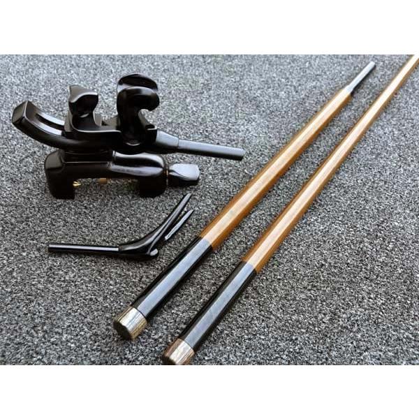 カーボン1本半竿掛けと弓型万力の竿掛けセットです。大まかなコミ合わせは出来ておりますのでそのまま使用可能です。