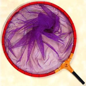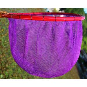 個性的な形をした天然モミ枠に、2.5mm目のパープルカラーの網をつけてあります。
