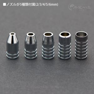 金属製ノズルが5種類(2/3/4/5/6mm径)付属しますので、用途に合わせて選べます。