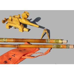すぐに使える!24尺ぐらいまで使用可能! 天然竹竿掛け2本もの+木製大砲万力セット